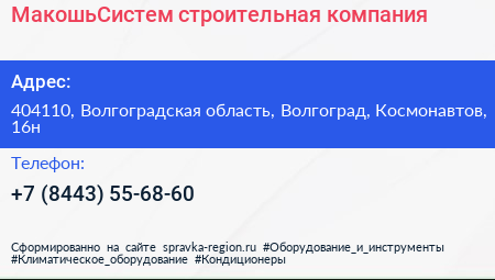 МакошьСистем, строительная компания по адресу 404110, Волгоградская область, Волгоград, Космонавтов, 16н в дальнейшем Организация, размещена в следующих категориях: