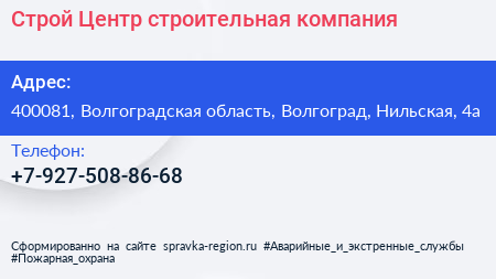 Строй-Центр, строительная компания по адресу 400081, Волгоградская область, Волгоград, Нильская, 4а в дальнейшем Организация, размещена в следующих категориях: