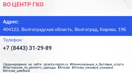 ВО ЦЕНТР ГКО по адресу 404122, Волгоградская область, Волгоград, Кирова, 19Б в дальнейшем Организация, размещена в следующих категориях: