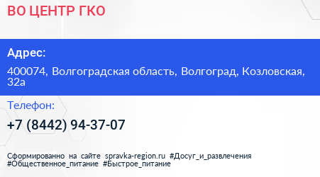ВО ЦЕНТР ГКО по адресу 400074, Волгоградская область, Волгоград, Козловская, 32а в дальнейшем Организация, размещена в следующих категориях: