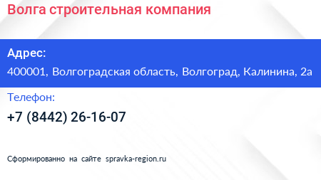 Волга, строительная компания по адресу 400001, Волгоградская область, Волгоград, Калинина, 2а в дальнейшем Организация, размещена в следующих категориях: