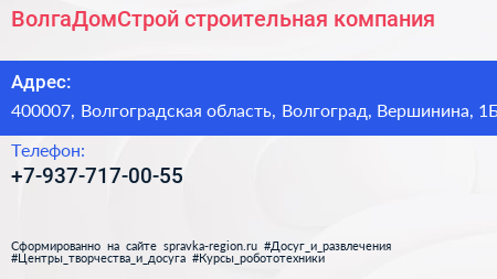 ВолгаДомСтрой, строительная компания по адресу 400007, Волгоградская область, Волгоград, Вершинина, 1Б в дальнейшем Организация, размещена в следующих категориях: