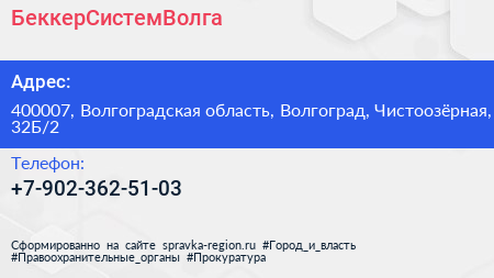 БеккерСистемВолга по адресу 400007, Волгоградская область, Волгоград, Чистоозёрная, 32Б/2 в дальнейшем Организация, размещена в следующих категориях: