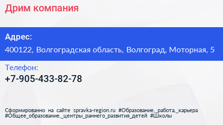 Для связи с организацией воспользуйтесь номером телефона: +7-905-433-82-78. Ежедневно с 09:00 до 21:00, вы можете обратиться в эту организацию.
