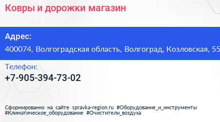 Ковры и дорожки, магазин по адресу 400074, Волгоградская область, Волгоград, Козловская, 55 в дальнейшем Организация, размещена в следующих категориях: