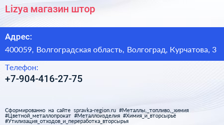 Lizya, магазин штор по адресу 400059, Волгоградская область, Волгоград, Курчатова, 3 в дальнейшем Организация, размещена в следующих категориях: