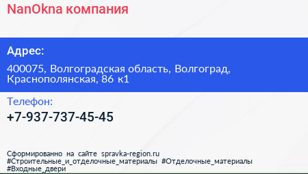 NanOkna, компания по адресу 400075, Волгоградская область, Волгоград, Краснополянская, 86 к1 в дальнейшем Организация, размещена в следующих категориях: