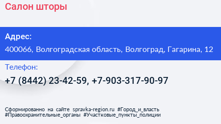 Салон-шторы по адресу 400066, Волгоградская область, Волгоград, Гагарина, 12 в дальнейшем Организация, размещена в следующих категориях: