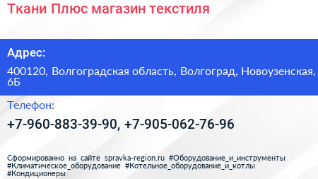 Ткани Плюс, магазин текстиля по адресу 400120, Волгоградская область, Волгоград, Новоузенская, 6Б в дальнейшем Организация, размещена в следующих категориях: