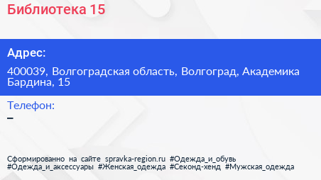 Библиотека №15 по адресу 400039, Волгоградская область, Волгоград, Академика Бардина, 15 в дальнейшем Организация, размещена в следующих категориях: