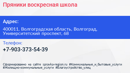 Пряники, воскресная школа по адресу 400011, Волгоградская область, Волгоград, Университетский проспект, 68 в дальнейшем Организация, размещена в следующих категориях: