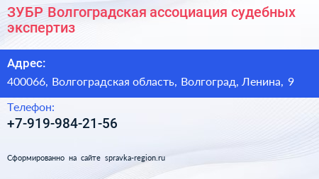 ЗУБР, Волгоградская ассоциация судебных экспертиз по адресу 400066, Волгоградская область, Волгоград, Ленина, 9 в дальнейшем Организация, размещена в следующих категориях:
