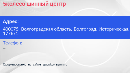 5колесо, шинный центр по адресу 400075, Волгоградская область, Волгоград, Историческая, 177Б/1 в дальнейшем Организация, размещена в следующих категориях: