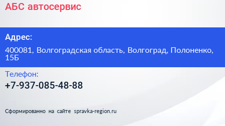 АБС-автосервис по адресу 400081, Волгоградская область, Волгоград, Полоненко, 15Б в дальнейшем Организация, размещена в следующих категориях: