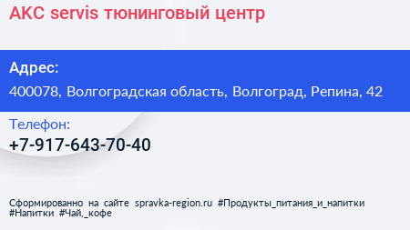 AKC servis, тюнинговый центр по адресу 400078, Волгоградская область, Волгоград, Репина, 42 в дальнейшем Организация, размещена в следующих категориях: