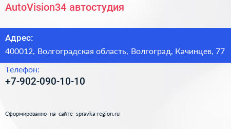 AutoVision34, автостудия по адресу 400012, Волгоградская область, Волгоград, Качинцев, 77 в дальнейшем Организация, размещена в следующих категориях: