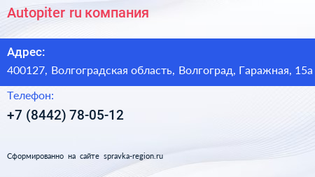 Autopiter.ru, компания по адресу 400127, Волгоградская область, Волгоград, Гаражная, 15а в дальнейшем Организация, размещена в следующих категориях: