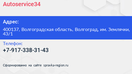 Autoservice34 по адресу 400137, Волгоградская область, Волгоград, им. Землячки, 43/1 в дальнейшем Организация, размещена в следующих категориях: