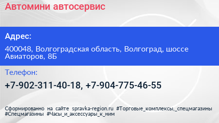 Автомини, автосервис по адресу 400048, Волгоградская область, Волгоград, шоссе Авиаторов, 8Б в дальнейшем Организация, размещена в следующих категориях:
