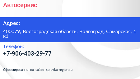 Автосервис по адресу 400079, Волгоградская область, Волгоград, Самарская, 1 к1 в дальнейшем Организация, размещена в следующих категориях: