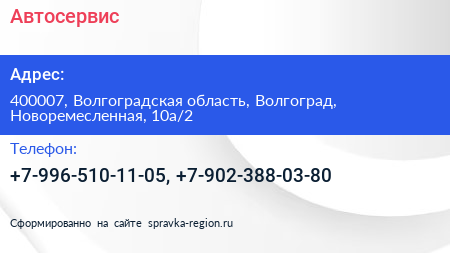 Автосервис по адресу 400007, Волгоградская область, Волгоград, Новоремесленная, 10а/2 в дальнейшем Организация, размещена в следующих категориях: