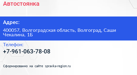 Автостоянка по адресу 400057, Волгоградская область, Волгоград, Саши Чекалина, 1Б в дальнейшем Организация, размещена в следующих категориях: