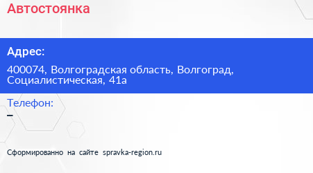 Автостоянка по адресу 400074, Волгоградская область, Волгоград, Социалистическая, 41а в дальнейшем Организация, размещена в следующих категориях: