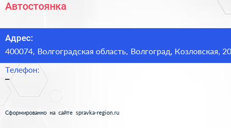 Автостоянка по адресу 400074, Волгоградская область, Волгоград, Козловская, 20 в дальнейшем Организация, размещена в следующих категориях:
