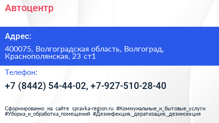 Автоцентр по адресу 400075, Волгоградская область, Волгоград, Краснополянская, 23 ст1 в дальнейшем Организация, размещена в следующих категориях: