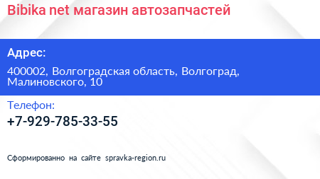 Bibika.net, магазин автозапчастей по адресу 400002, Волгоградская область, Волгоград, Малиновского, 10 в дальнейшем Организация, размещена в следующих категориях: