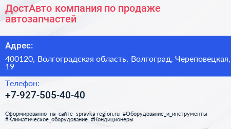 ДостАвто, компания по продаже автозапчастей по адресу 400120, Волгоградская область, Волгоград, Череповецкая, 19 в дальнейшем Организация, размещена в следующих категориях: