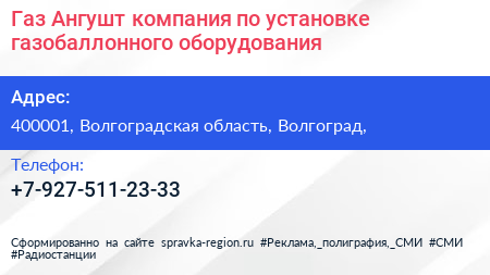 Газ Ангушт, компания по установке газобаллонного оборудования по адресу 400001, Волгоградская область, Волгоград, в дальнейшем Организация, размещена в следующих категориях:
