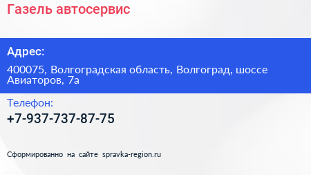 Газель, автосервис по адресу 400075, Волгоградская область, Волгоград, шоссе Авиаторов, 7а в дальнейшем Организация, размещена в следующих категориях: