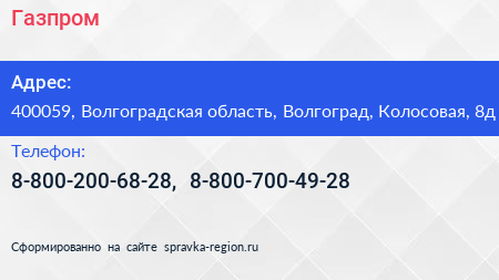 Газпром по адресу 400059, Волгоградская область, Волгоград, Колосовая, 8д в дальнейшем Организация, размещена в следующих категориях: