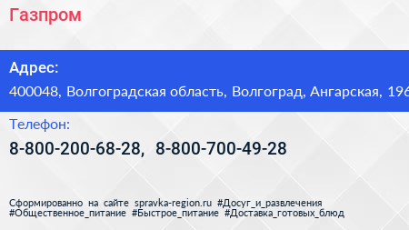 Газпром по адресу 400048, Волгоградская область, Волгоград, Ангарская, 196 в дальнейшем Организация, размещена в следующих категориях: