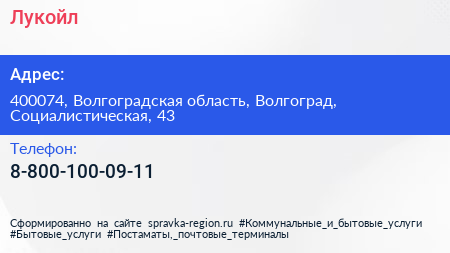 Лукойл по адресу 400074, Волгоградская область, Волгоград, Социалистическая, 43 в дальнейшем Организация, размещена в следующих категориях: