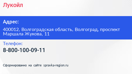 Лукойл по адресу 400012, Волгоградская область, Волгоград, проспект Маршала Жукова, 11 в дальнейшем Организация, размещена в следующих категориях: