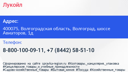 Лукойл по адресу 400075, Волгоградская область, Волгоград, шоссе Авиаторов, 1д в дальнейшем Организация, размещена в следующих категориях: