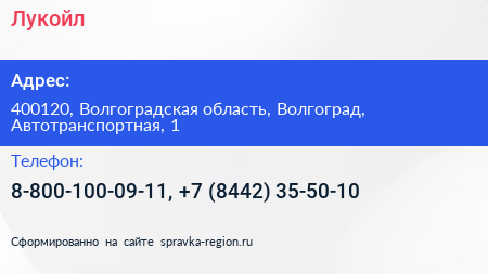 Лукойл по адресу 400120, Волгоградская область, Волгоград, Автотранспортная, 1 в дальнейшем Организация, размещена в следующих категориях: