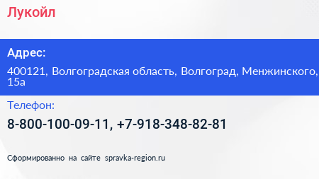 Лукойл по адресу 400121, Волгоградская область, Волгоград, Менжинского, 15а в дальнейшем Организация, размещена в следующих категориях: