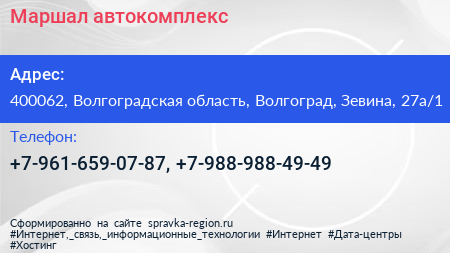 Маршал, автокомплекс по адресу 400062, Волгоградская область, Волгоград, Зевина, 27а/1 в дальнейшем Организация, размещена в следующих категориях: