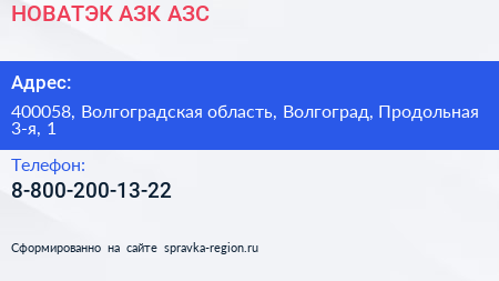 НОВАТЭК-АЗК, АЗС по адресу 400058, Волгоградская область, Волгоград, Продольная 3-я, 1 в дальнейшем Организация, размещена в следующих категориях: