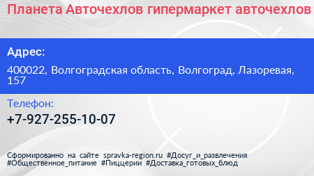 Планета Авточехлов, гипермаркет авточехлов по адресу 400022, Волгоградская область, Волгоград, Лазоревая, 157 в дальнейшем Организация, размещена в следующих категориях: