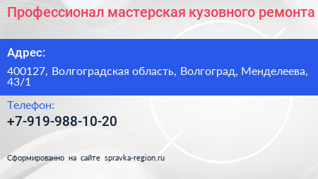Профессионал, мастерская кузовного ремонта по адресу 400127, Волгоградская область, Волгоград, Менделеева, 43/1 в дальнейшем Организация, размещена в следующих категориях: