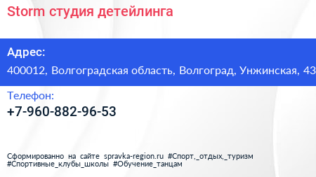 Storm, студия детейлинга по адресу 400012, Волгоградская область, Волгоград, Унжинская, 43 в дальнейшем Организация, размещена в следующих категориях: