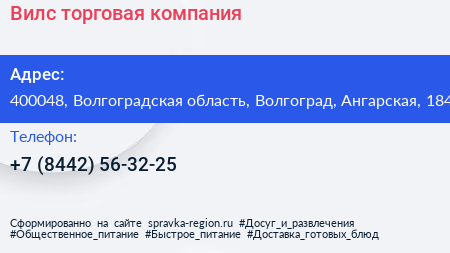 Вилс, торговая компания по адресу 400048, Волгоградская область, Волгоград, Ангарская, 184 в дальнейшем Организация, размещена в следующих категориях: