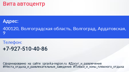 Вита, автоцентр по адресу 400120, Волгоградская область, Волгоград, Ардатовская, 9 в дальнейшем Организация, размещена в следующих категориях: