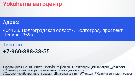 Yokohama, автоцентр по адресу 404133, Волгоградская область, Волгоград, проспект Ленина, 359а в дальнейшем Организация, размещена в следующих категориях: