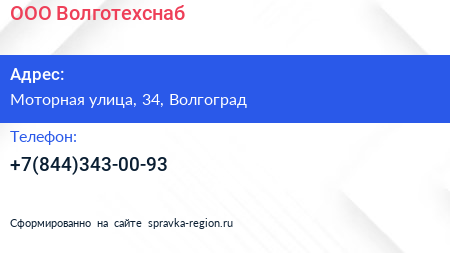ООО Волготехснаб по адресу Моторная улица, 34, Волгоград в дальнейшем Организация, размещена в следующих категориях: