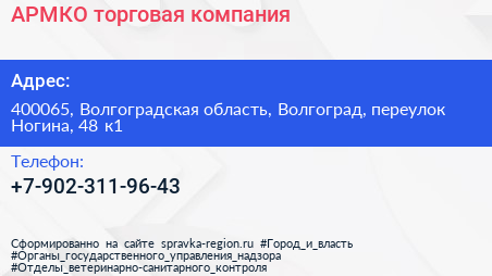 АРМКО, торговая компания по адресу 400065, Волгоградская область, Волгоград, переулок Ногина, 48 к1 в дальнейшем Организация, размещена в следующих категориях:
